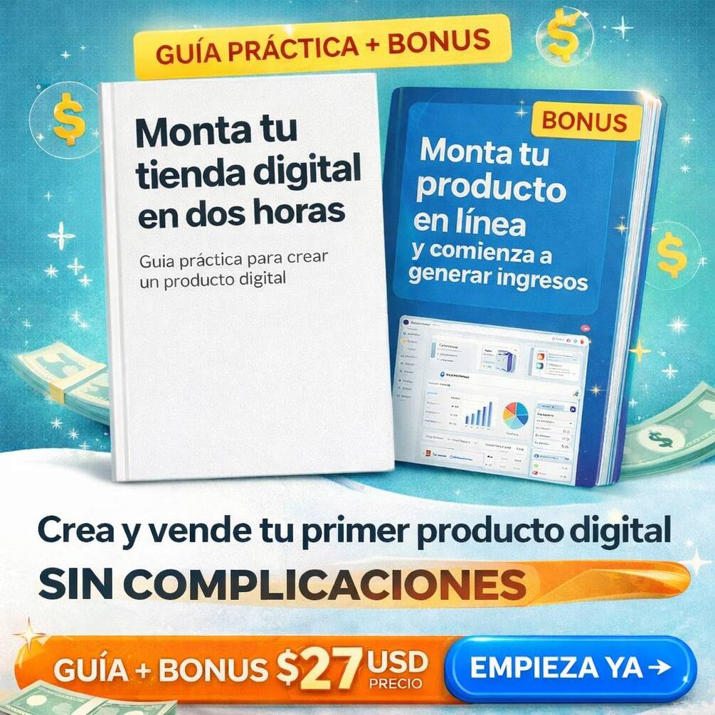 Monta tu tienda digital EN 2 HORAS sin rodeos es una guía práctica diseñada para ayudarte a crear y vender tu primer producto digital sin complicaciones ni teorías innecesarias. Aprenderás a identificar qué vender, validar tu idea y lanzar un producto simple que realmente resuelva un problema y genere ingresos.